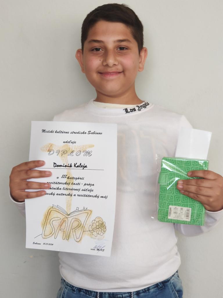 autorský a recitátorský máj .Medzi ocenenými súťažiacimi bol aj žiak 5. A triedy Dominik Kaleja.